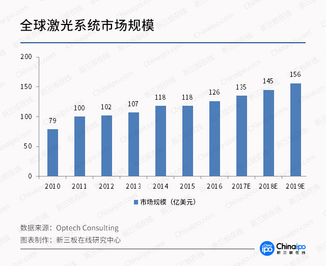 此外,根据瑞士咨询公司Optech Consulting的市场报告,2016年激光材料处理系统的全球市场增加了6.8%,达到126亿美元的新高,折合成人民币是一个接近1000亿元的市场。同时报告还指出,在全球市场中,中国的市场需求增长速度最快,达到了20%,远高于全球的平均增长水平。