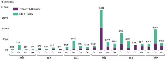 保险科技的交易活动从2017年第二季度创纪录的水平回落。