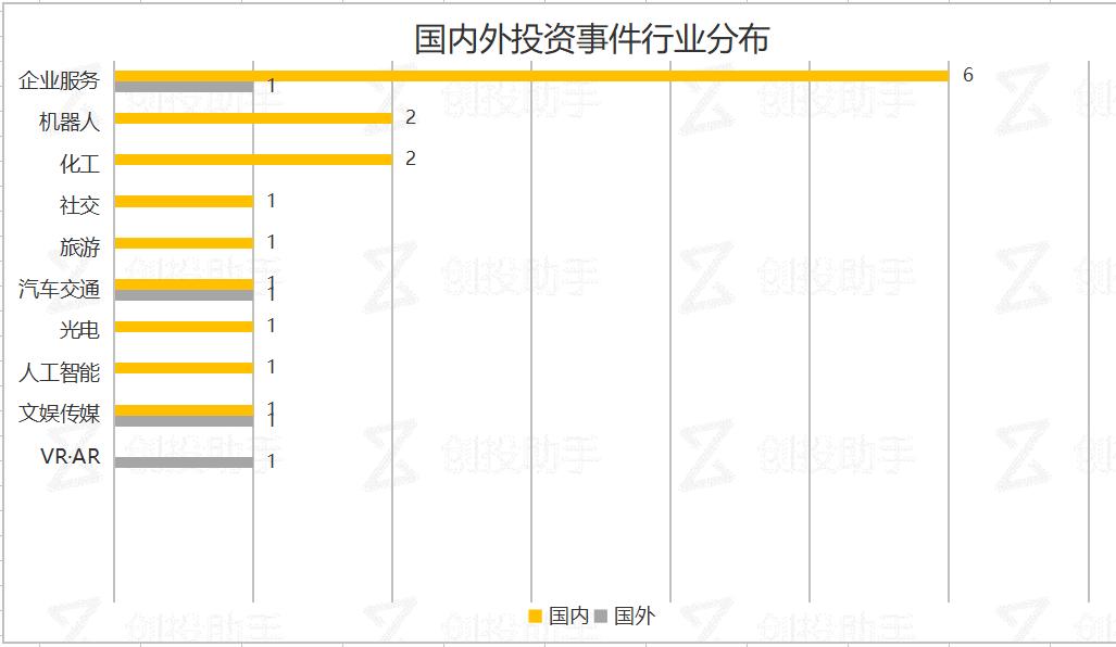 本日国内外共有20起融资事件,分布在10个行业中。国内16个项目获得融资,国外4个项目获得融资。