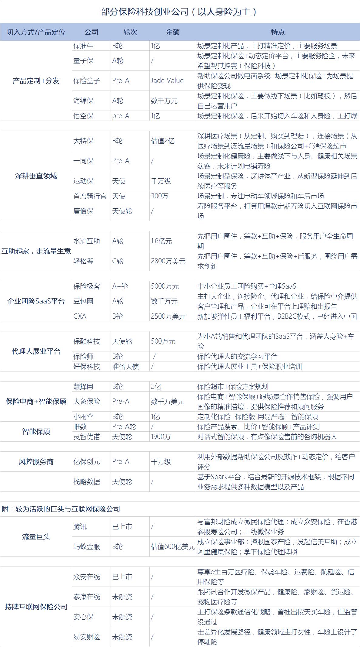 从这个赛道切入的保险科技公司,36氪报道过量子保、保准牛、保险盒子、运动保、大特保、一同保、海绵保、悟空保等。