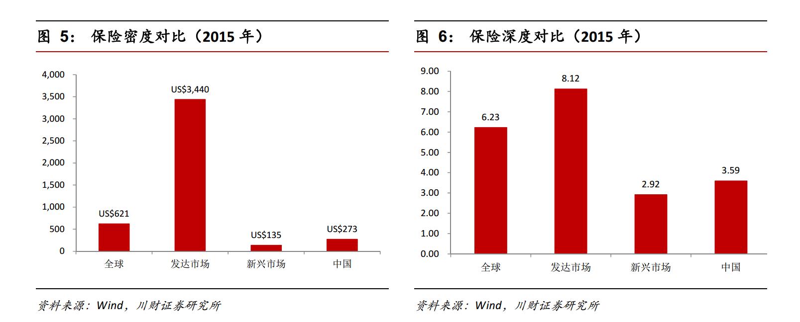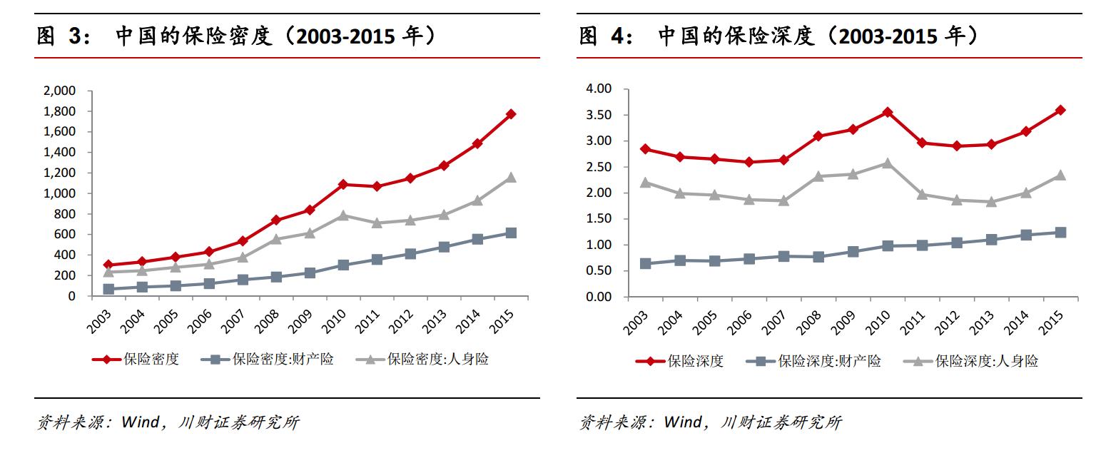 巨大的市场差距往往意味着巨大的市场潜力。随着中国人均收入水平的提升,中国的保险密度在逐年提升,何况还有政策加持。根据2014年保险国十条定的目标,到2020年,中国国的保险深度达到 5%,保险密度达到 3500 元人民币/人。