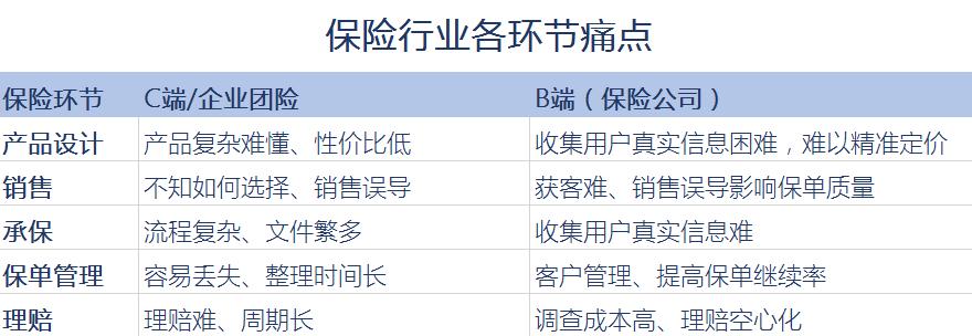 保险这个赛道尽管竞争激烈,但依然有创业者不断进来,除了因为看好未来,更是因为这个行业痛点满满(具体请看下列表格),每一个环节都有创业公司切入。