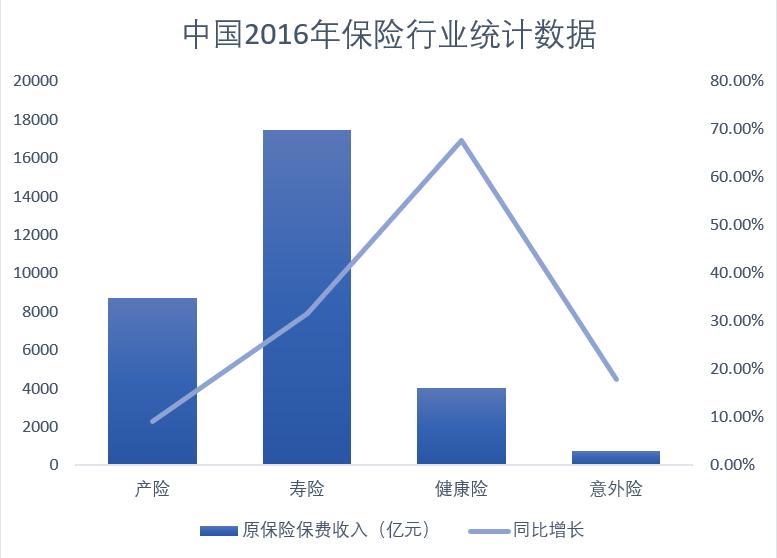 保险是个光存量就已经有万亿的市场。据保监会今年公布的数据,2016年原保险保费收入30959.10亿元。