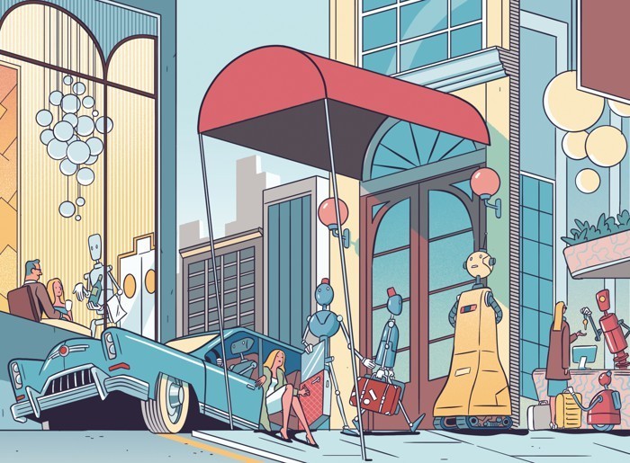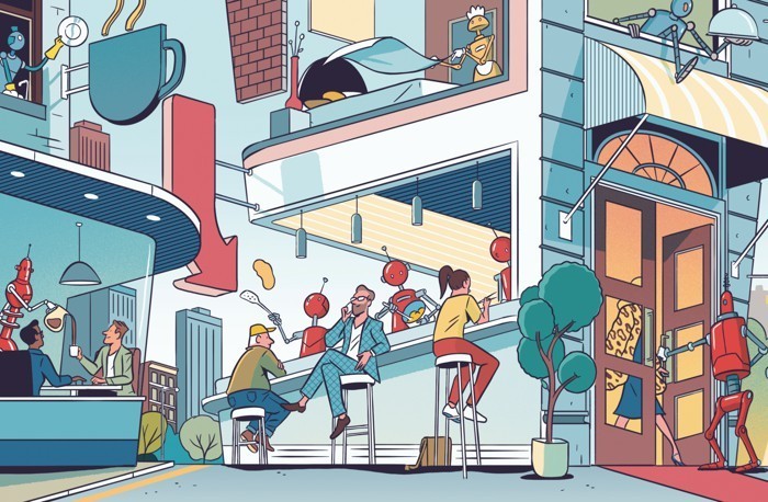 这些新岗位曾一度被认为最不可能被机器替代的,因为它们需要人类的接触,而制造或采矿工作却不需要。在点一杯咖啡或入住酒店时,人类想要与他人互动——或者说,我们是这么认为的。将机器人引入服务业的公司都认为,我们很乐意与爽朗的咖啡师或知识渊博的前台接待员沟通,以提高效率。他们也相信,增加机器人并不一定意味着减少人类的工作。