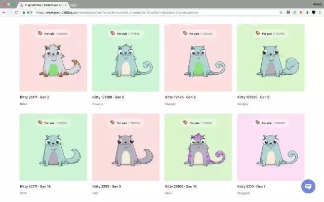 第一产业:农业…第二产业:工业…第三产业:服务业…,这些产业要么成熟,要么稳定,虽然服务业还在继续发展,但是人类在原子世界创造财富的天花板越来越明显了,如果要想持续推动经济发展,持续创造无尽的财富,那么我们就要在第四产业:数字产业(虚拟产业)发力,这个世界的想象空间是无限的。比特币已经为这个世界凭空创造了2600亿美金的价值,其他数字货币加起来也有1000亿美金了(仅以太坊就将近500亿美金市值),这些财富和价值,都是在数字世界创造的,这只不过是个开始。另外,最近基于以太坊开发的“加密猫 Cryptokitties”,本质上也是数字世界创造的一种新的价值(共识),理解了价值的本质是共识,就不难理解加密猫的火爆了。有兴趣的不妨搜索一下“以太坊加密猫”,或者去官网看看价值92万个ETH的数字猫长什么样: