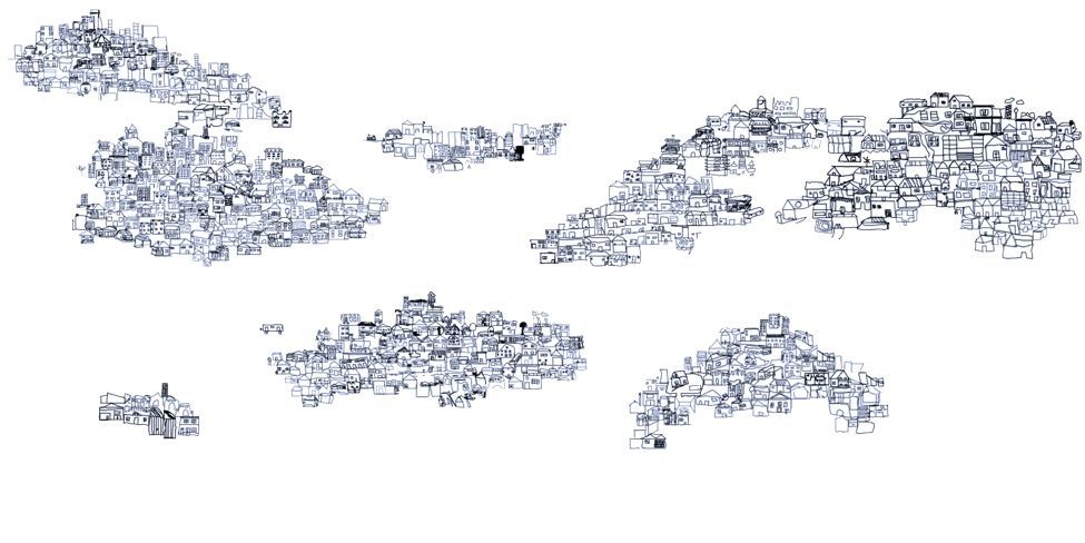 随后,这些建筑会基于他们的地理位置然后自动地堆叠到一张世界地图上。