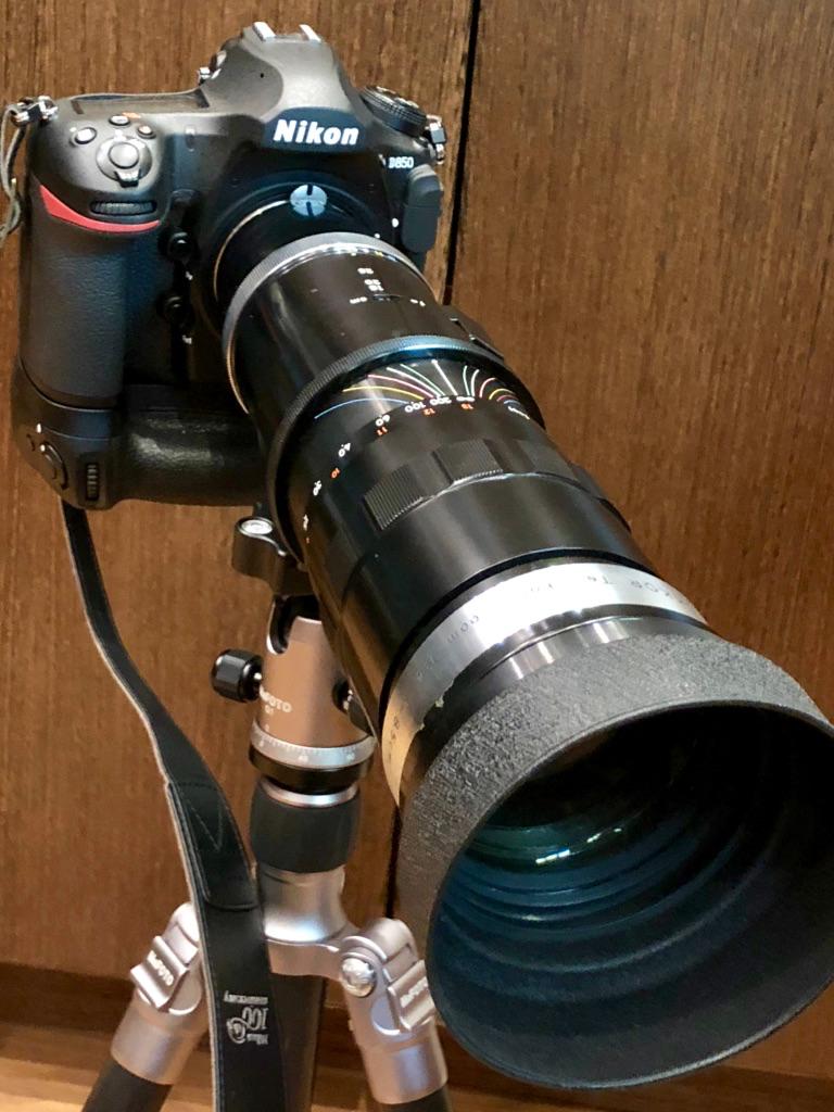 注解:这是倒数回去第五张照片记者席中左边戴白帽记者手里的相机镜头。这是第一款商用的变焦镜头,于1959年11月推出,也就是F发布仅3个月后。这张图是这个镜头套在了2017年秋(59年后!)最新推出的尼康D850上。