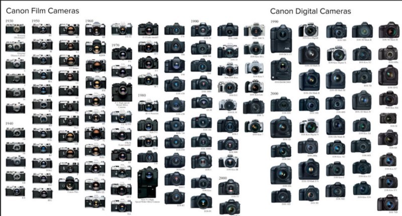 注解:到2000年代佳能已经发展出一个庞大的相机家族,不管是胶片相机还是数码相机都非常丰富。