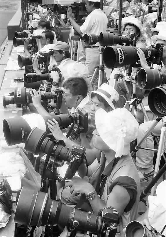 注解:进入1980年代,尼康是专业人士的唯一选择。这是一群体育摄影记者的照片。