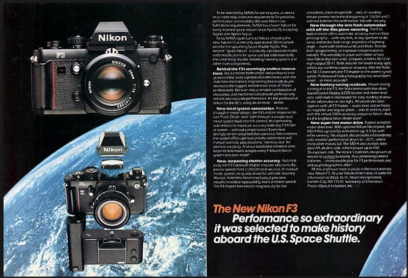 注解:尽管哈色博莱德(Hasselblad)登上了月球,但尼康却在1960年代进入了太空,这是它跟NASA紧密的设计合作的结果,这种合作在1980年代大规模的广告宣传达到了巅峰。注意,专注于极其专业使用的广告活动也可以用于吸引业余人士和消费者!