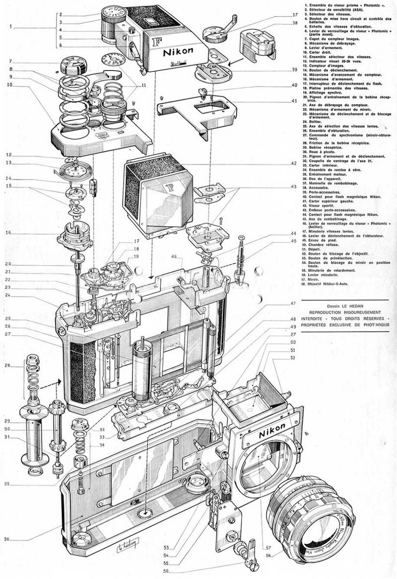 注解:这是尼康F艺术化的原理图。这个太令人惊艳了,你还可以在Esty上的衬衫和印刷品上找到它。