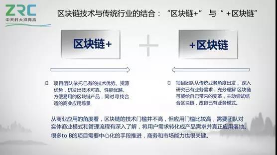 区块链技术与传统经济结合,有「区块链+」和「+区块链」两种方式。「区块链+」是指项目团队基于区块链设计了一个场景,然后基于这个场景,在现实经济中实现落地。「+区块链」是指传统项目团队从传统业务出发,通过对所在行业的深入了解,找到一个与区块链技术合适的结合点,并且通过区块链技术对原有的技术或商业模式进行升级。