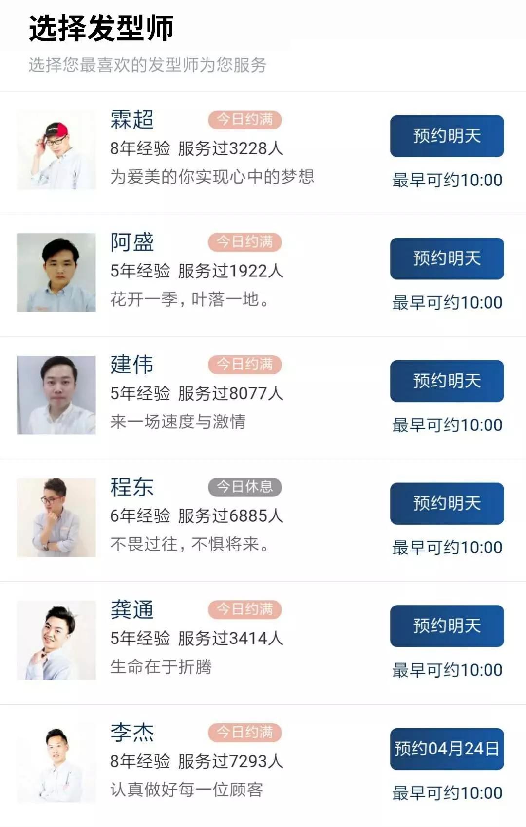 中国一家美发店在线预约发型师的界面