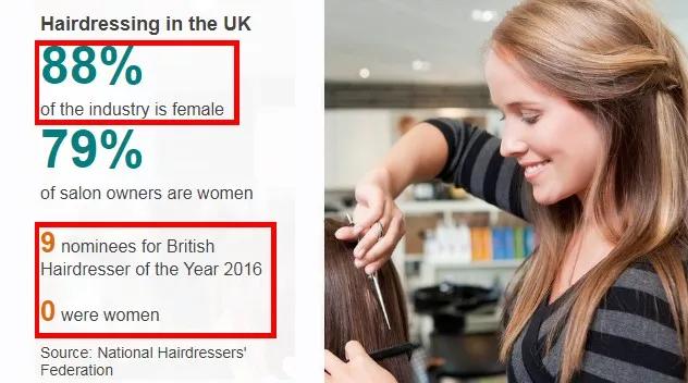 这一点在西方国家尤为明显:在美国、英国和澳大利亚,女发型师在行业中所占比例分别为 85%、88% 和 91%,属于绝对主流,然而,声名显赫的顶级发型师却几乎都是男的。