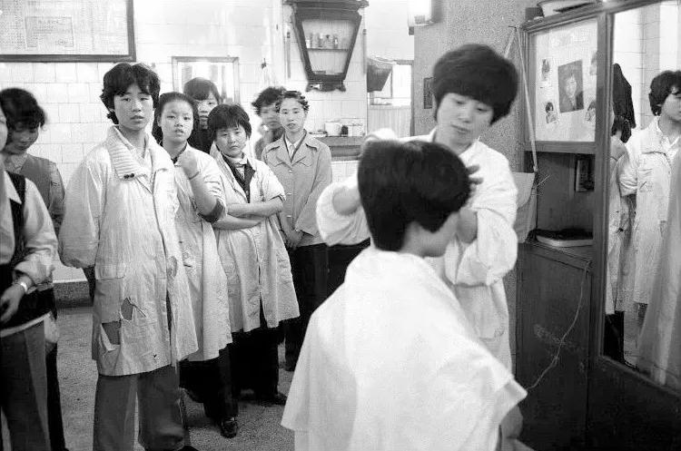 80 年代,一家中国美发店里的女发型师和学徒