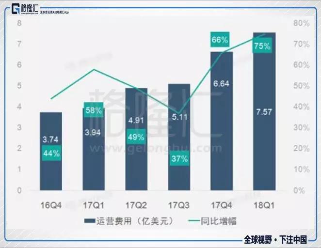 在业务现疲软期之时,网易的营业费用却继续高企。根据财报,网易2018年第一季度营业费用为47.47亿元人民币(7.57亿美元),上一季度和去年同期分别为43.18亿元人民币和27.12亿元人民币,同比增幅高达75.04%。
