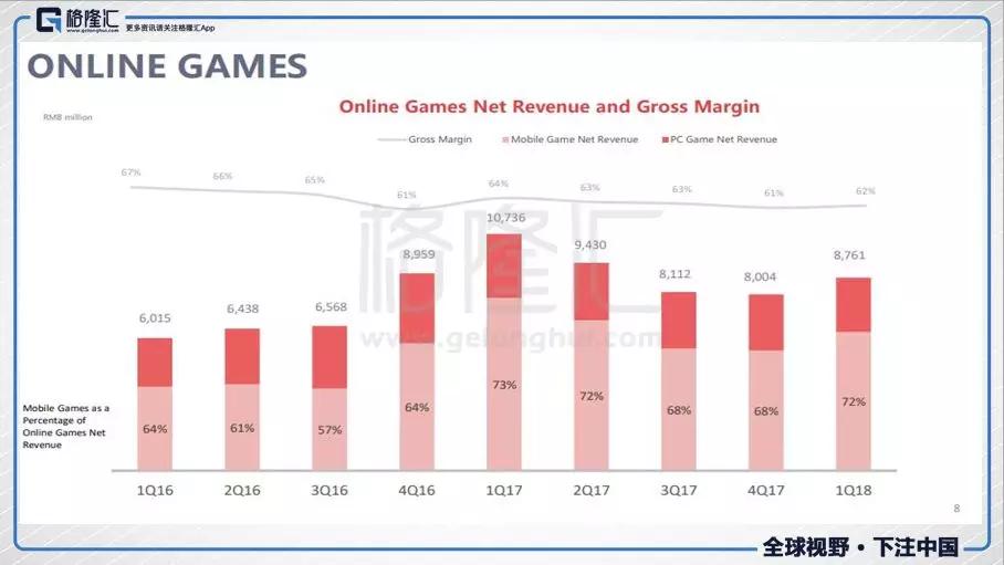 (4)第一季度在线游戏服务净营收88亿元人民币,同比下滑18.4%,环比增加9.5%,