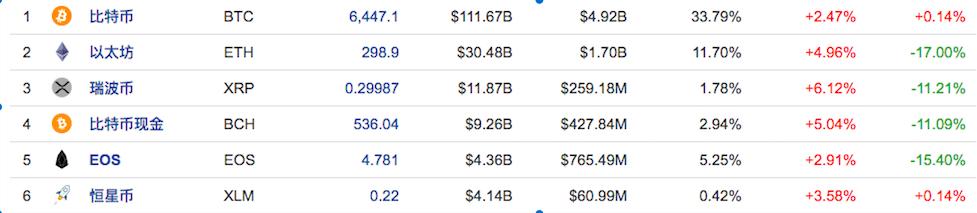 比特币 BTC 报 6447.1 美元,7 日内涨跌幅 +0.14%;