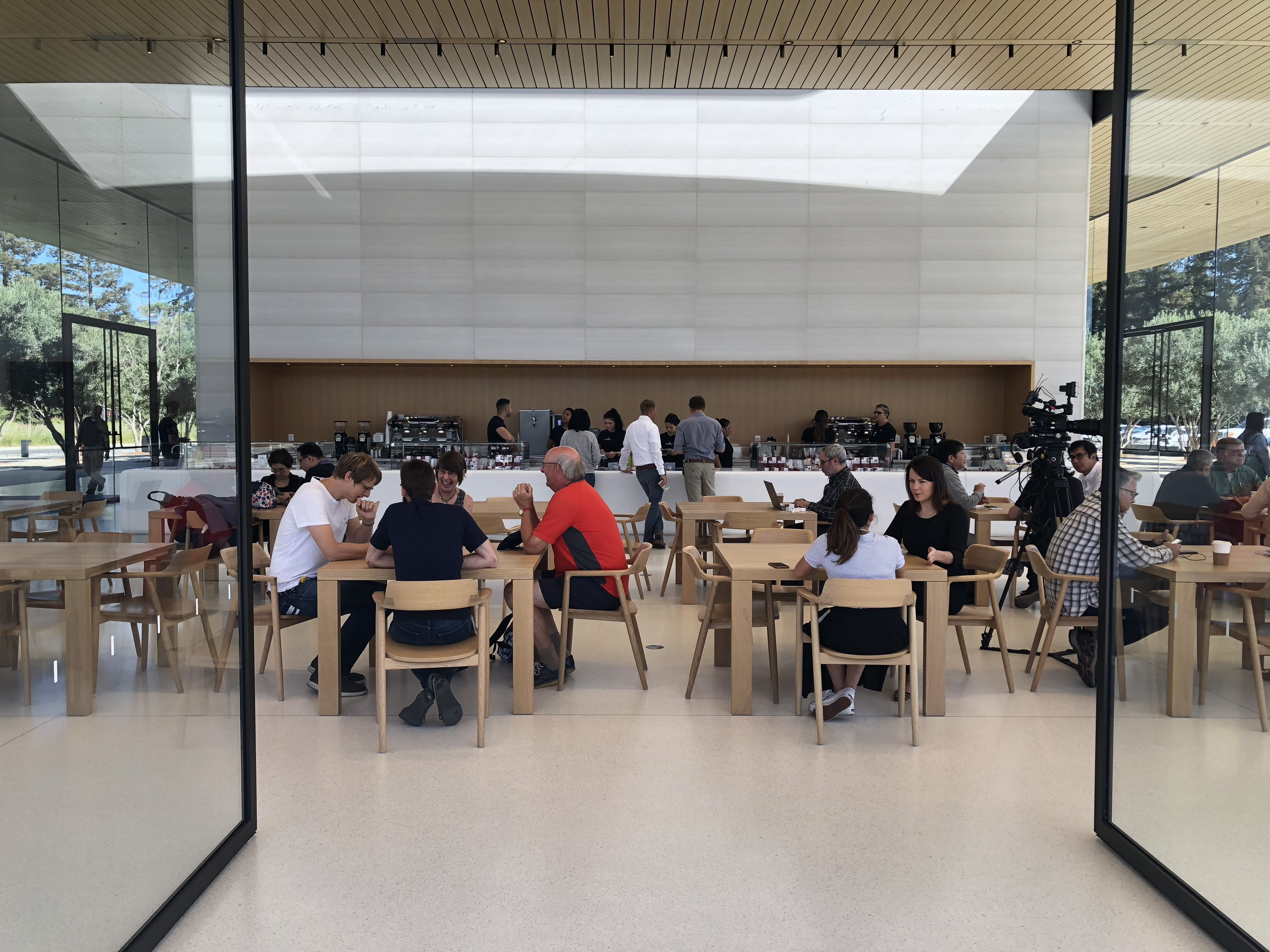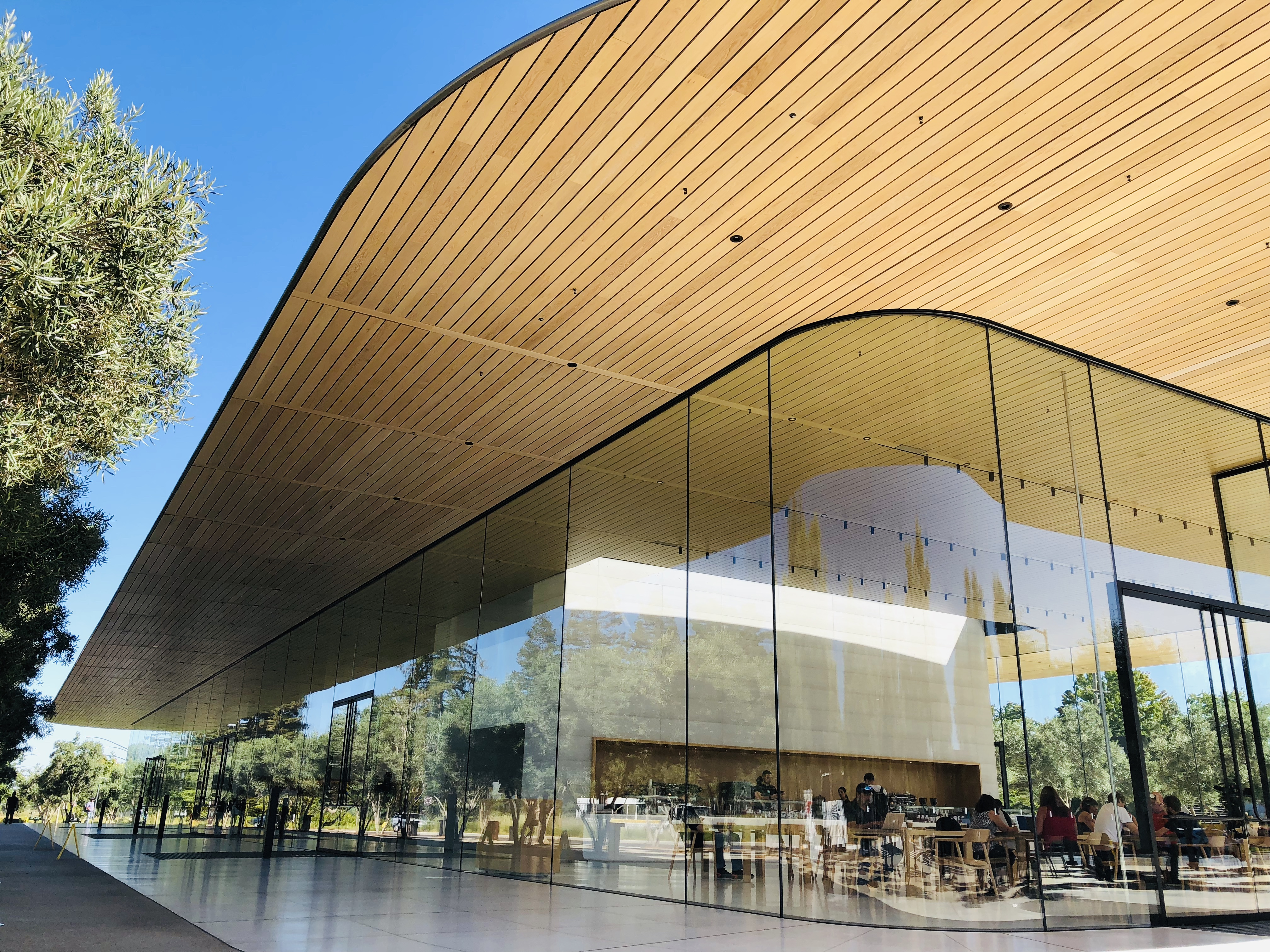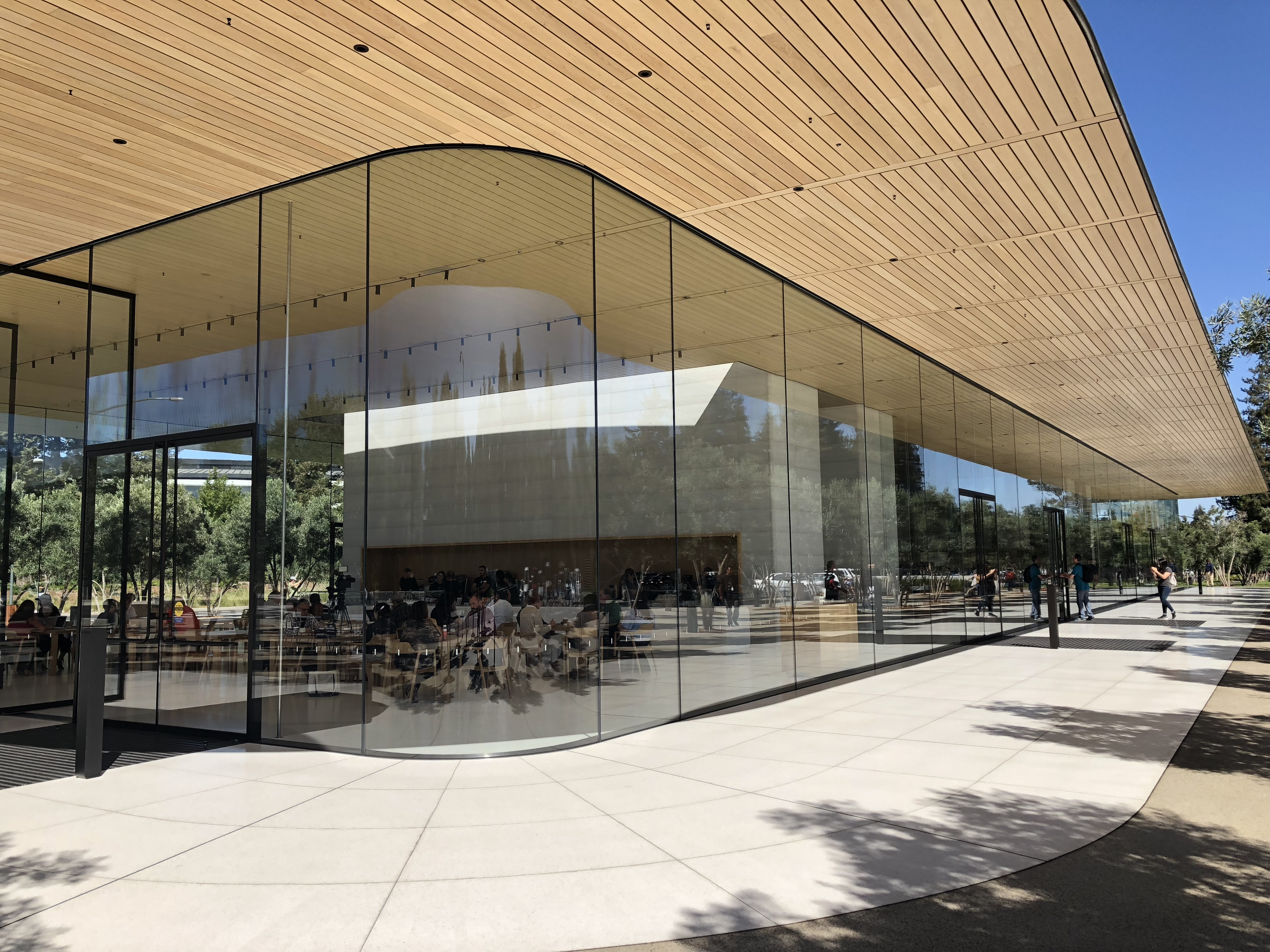访客中心的外观,遵循了苹果一贯的设计风格,周围是透明玻璃环绕,简约又不失设计感,一看就是苹果范儿。于是,我们也直接走进去体验了。