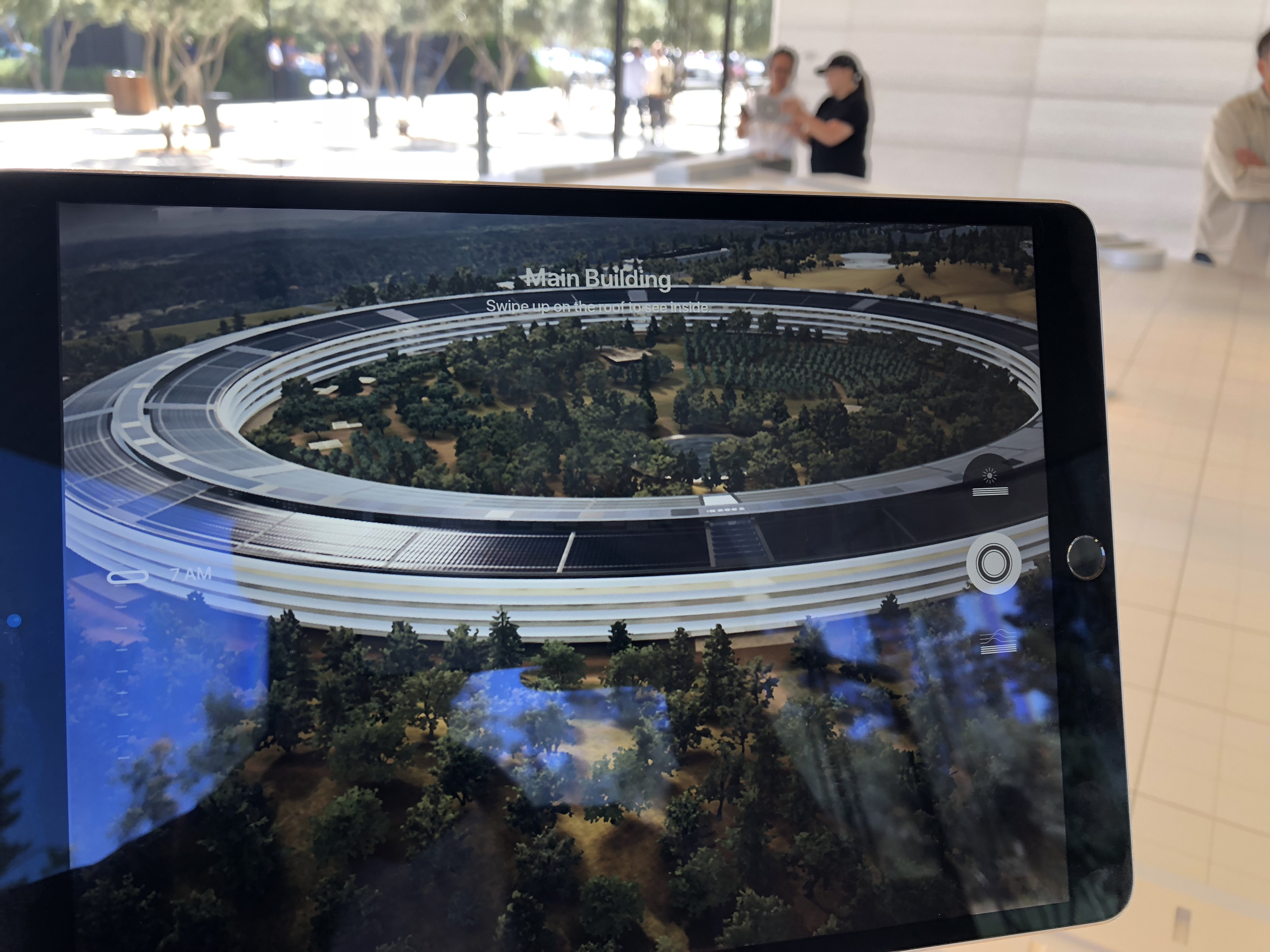 利用iPad,可以用AR技术看到Apple Park的全貌。