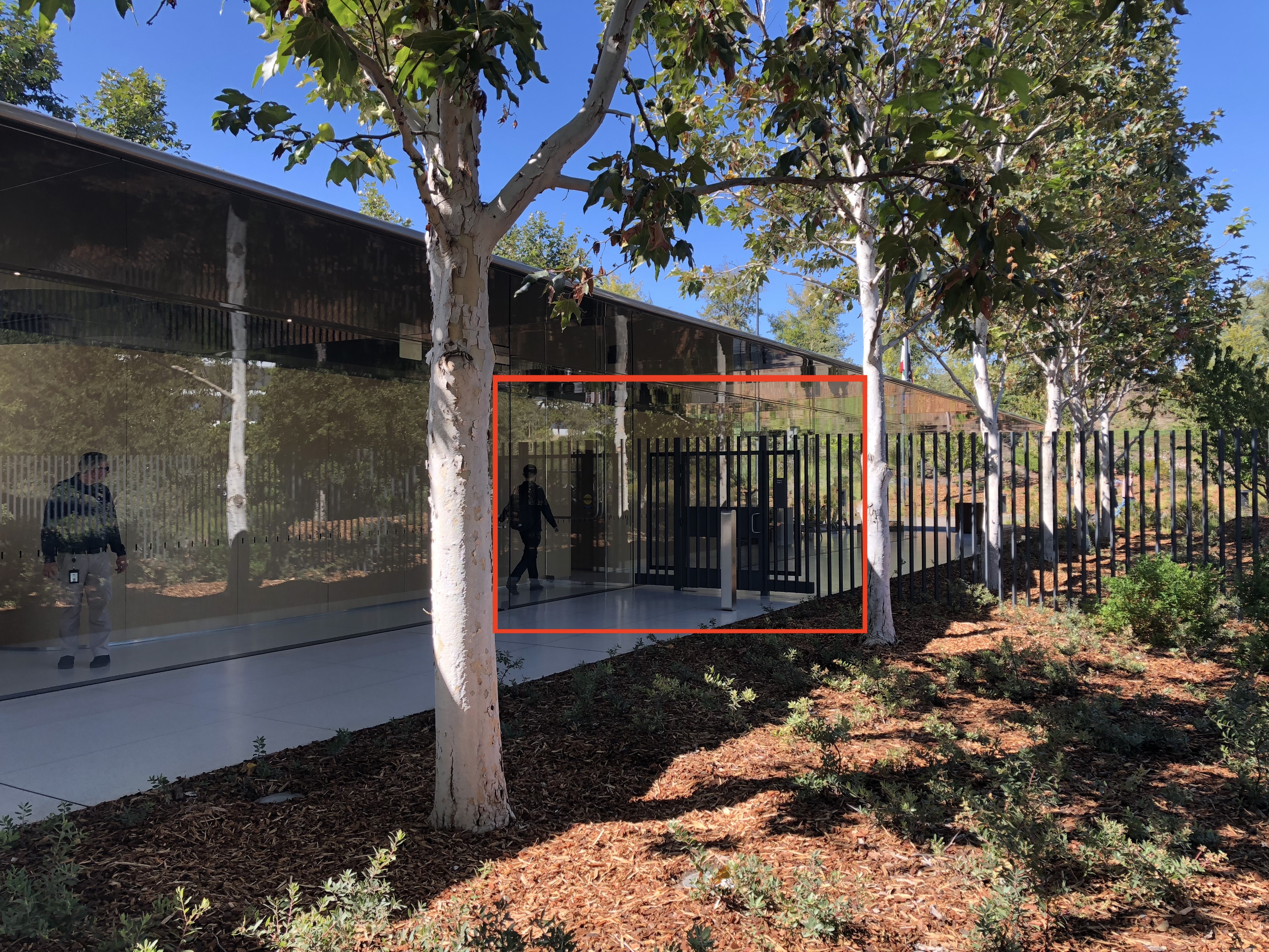 通往乔布斯剧场的快速入口,现在是大门紧锁,并且时刻有保安看守。