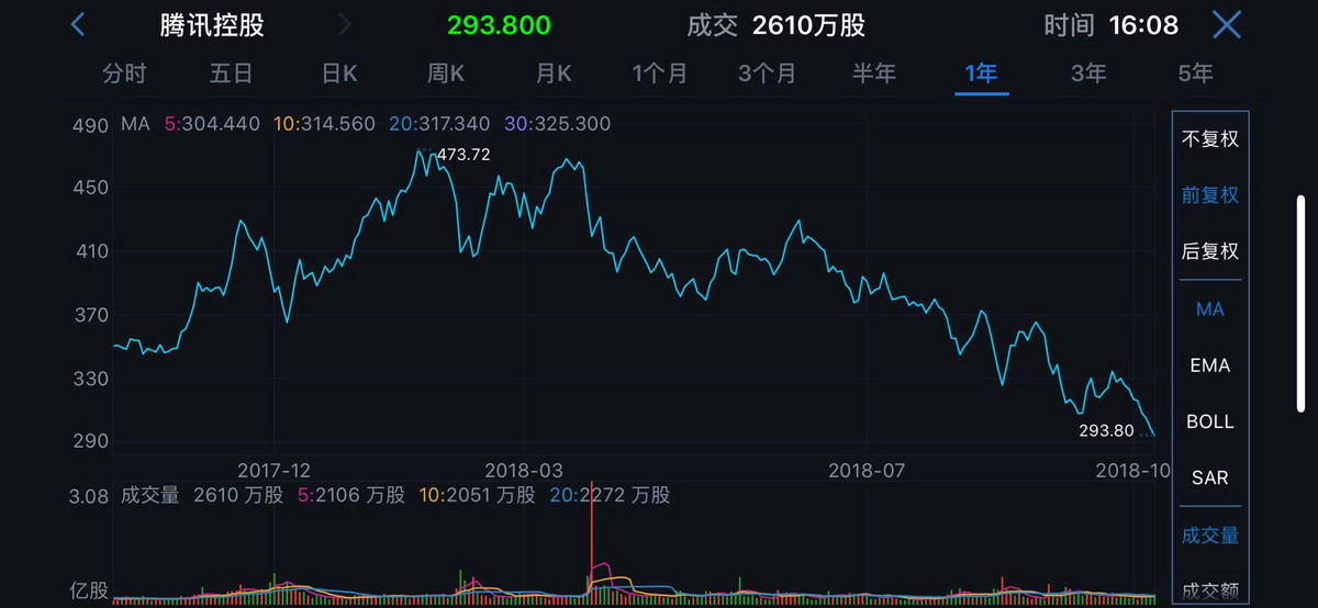 腾讯近一年股价走势