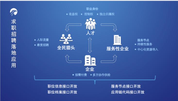而猎链节点的主要职责在对接和服务企业。比如当一猎链平台上有一个企业发出招聘需求,各服务节点可以按需完成任务然后获得报酬。对企业方来说相比在彼此割裂的不同单一渠道获得招聘信息,多渠道显然可以提高招聘效率。而对招聘服务公司来说,不必担心获客问题 ,因此可以将主要精力放在招聘服务上。猎链的目标是在完成线上招聘求职的基础规则搭建后,孵化扶持出数家招聘服务行业的上市公司。