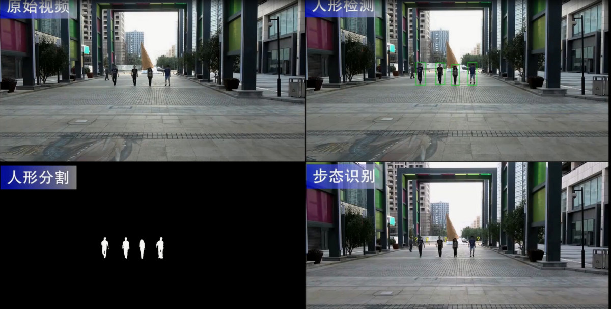 银河水滴科技步态识别的人形检测、分割、识别、跟踪示意图