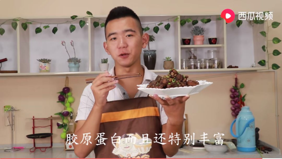 视频最后,他用筷子夹起一块猪尾巴肉,“猪尾巴吃起来实在是太棒了,胶原蛋白而且还特别丰富,绝对越吃越美味”。他油光满面的自信,消失在视频末尾简单的字幕中。
