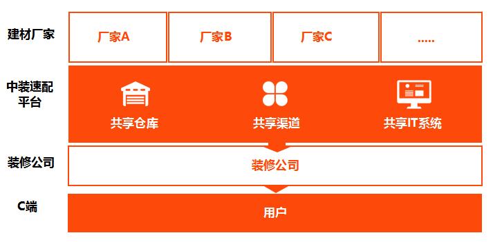 戴洪亮称,中装速配通过和工厂合作,将销售渠道扁平化,能帮助装企节省 30% 采购成本,目前平台合作了 50 多个一二线建材品牌。