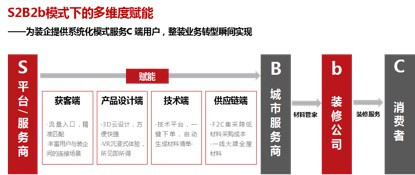 中装速配正是从家装市场切入,以期打造整装市场的供应链平台,搭建 S2B2b 的商业模式。目前,中装速配通过城市服务商加盟的形式,在全国将近 60 个城市设立服务商,这些服务商作为平台的一员,为装修公司提供产品设计、材料配送、安装售后等落地服务。