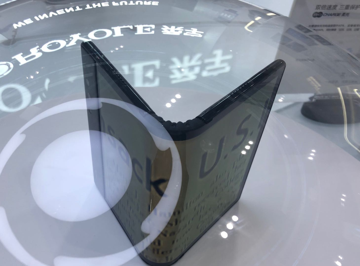 柔宇的深圳机场线下店展示的折叠手机,只能参观,不能上手体验