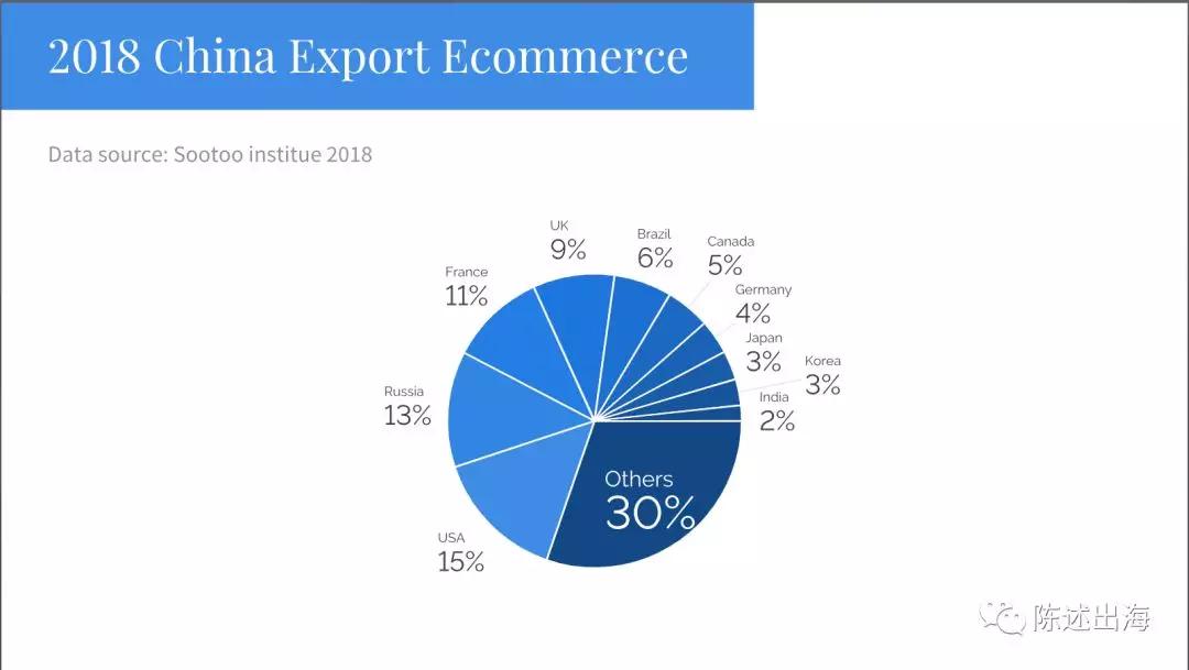 在现有的跨境电商交易量中,根据 Sootoo Institute 的统计,2018中国出口电商交易中,面向发达市场的占比再60%以上,新兴市场也已经占据一个不可忽视的比例。