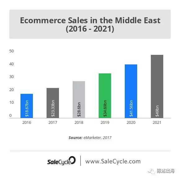 而另一大中国跨境电商重点关注的市场中东,预计2019年的在线零售额也将达到350亿美元。