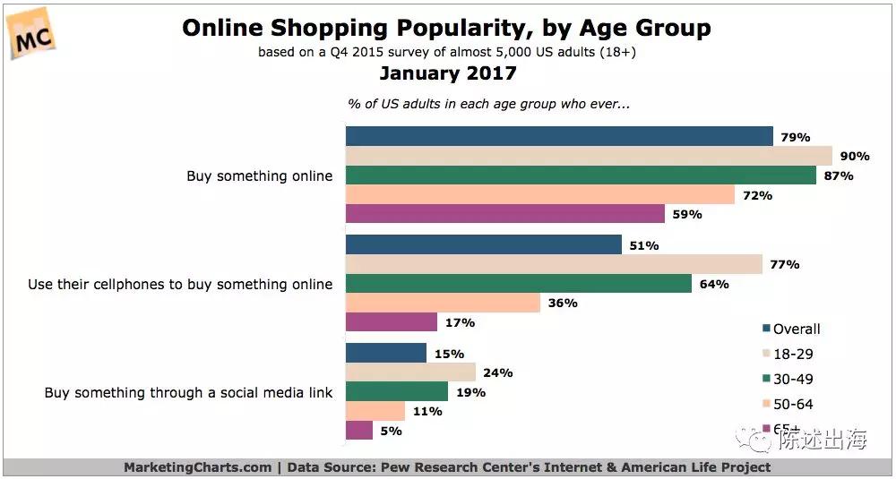 美国在线购物人群年龄分布:18-29岁是最主要的网购人群