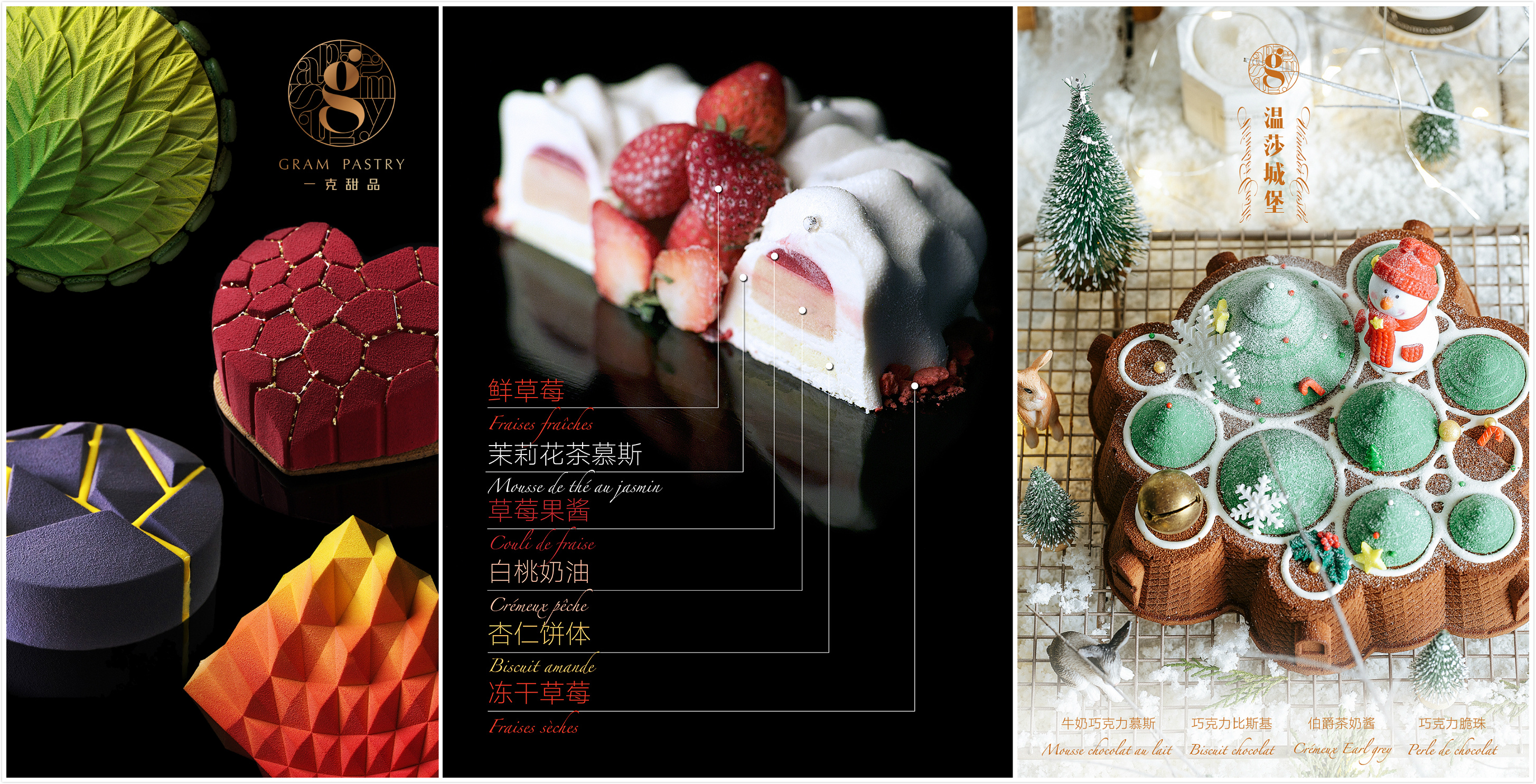 覃菘告诉36氪,消费品最终的门槛还是品牌认知上,“一克甜品”就是希望给消费者留下设计感、艺术感的印象。目前约有 10 个 SKU,风格会有所不同,例如上图的“温莎城堡”就是圣诞节主题蛋糕。