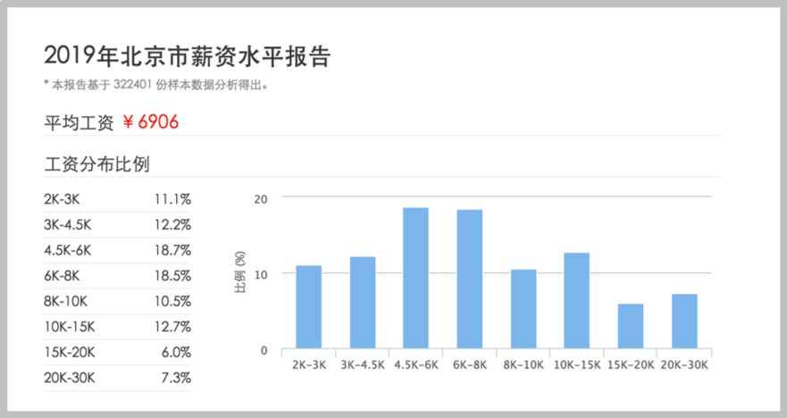 根据《2019年北京市薪资水平报告》显示,北京市的平均工资为6906元。