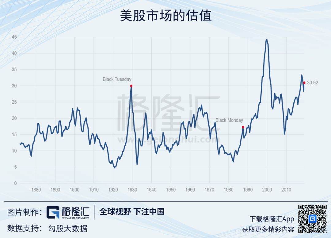通常美股的CAPE在5~6倍左右接近底部,超过25倍进入“非理性繁荣”的疯狂期。而当前CAPE数据已经在31倍左右,表明美股市场估值已经处在一个泡沫很大的时期,回归均值是不可避免的。