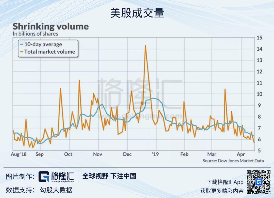 过去十个交易日,美股的平均总成交量处于去年9月12日以来的最低点,而且按照现在的节奏继续下去,4月也将成为去年8月以来日均成交量最低的一个月,同时创下2013年以来4月最差纪录。