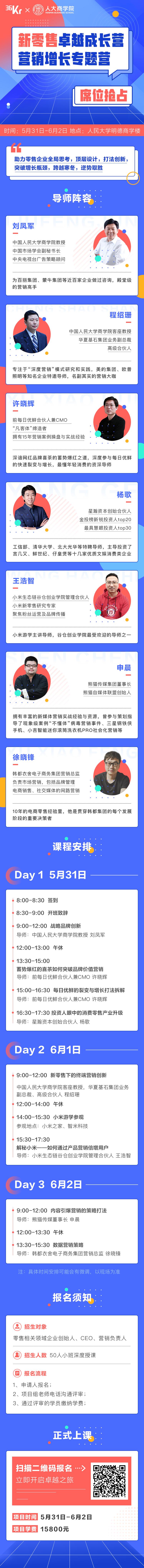 36氪联合人民大学商学院,共同打造深度小班课程,“新零售卓越成长营二期——营销增长专题营”,将重点解答大寒之年,零售企业如何稳定增长。这一期,我们不仅关注网红企业如何爆红,获得快速增长,更向上求索,探索战略品牌、终端营销的全局创新策略,让增长持续更久,同时学习巨头的新零售生态布局,为我们的事业,更增想象空间。