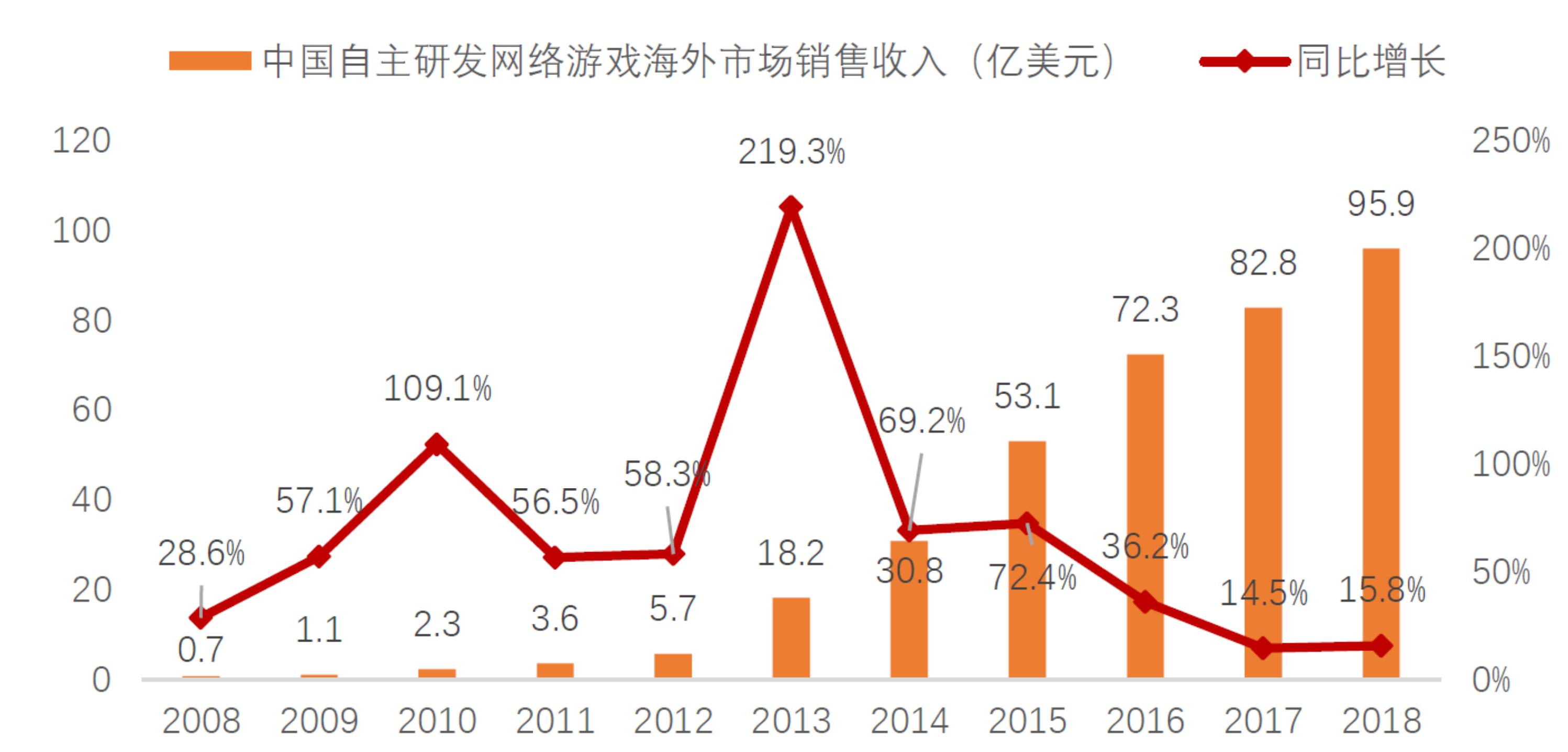 据统计,从2013年开始,中国游戏海外销售收入开始快速上升,至2018年中国游戏海外年销售收入已经达到约96亿美元,增长率15.8%。国内从严的游戏政策使国内游戏公司有动力开拓广阔的海外市场,如何在海外市场盈利成为关键点。