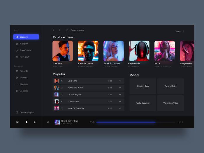 和“浅色模式”的设计一样,在设计“深色模式”的界面时,也必须要体现出层次感,同时突出页面布局中的重要元素。