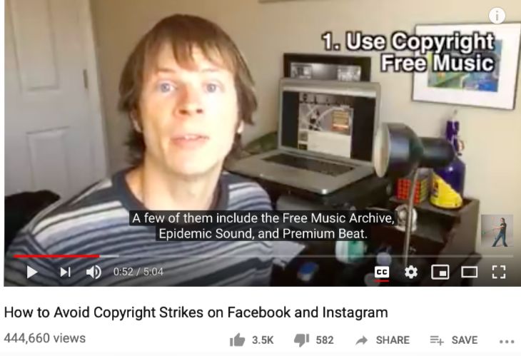 在YouTube中有一条44.4万播放量的视频「如何避免在使用Facebook和Instagram过程中涉及版权诉讼问题」,视频中音乐博主DrexFactor Poi建议大家使用公开版权的音乐网站,例如Free Music Archive,Epidemic Sound和Premium Beat在海外都很有名,他表示创作者可以在上面找到绝对安全并符合视频氛围的音乐,同时他也提醒到这些网站上的音乐有时候不会一直保持授权状态。