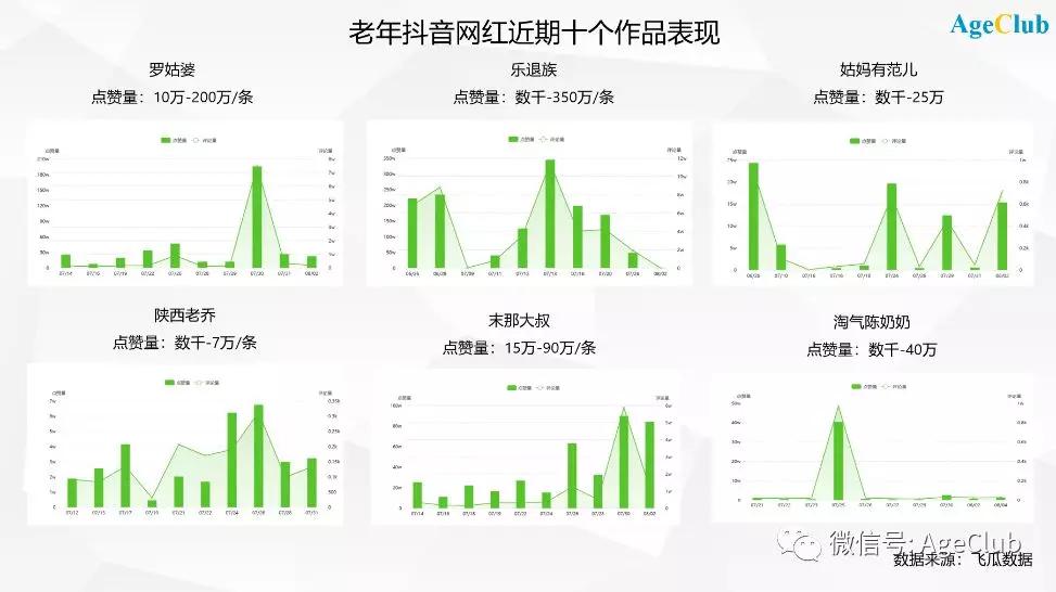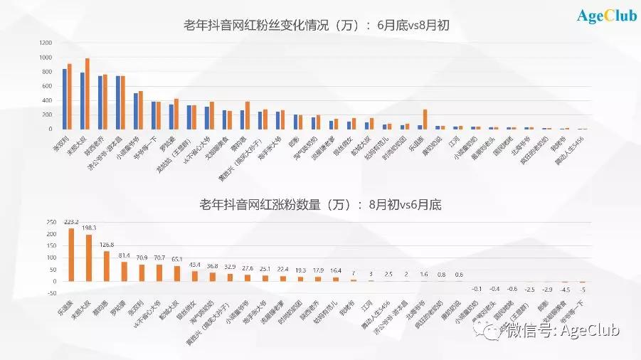 在AgeClub统计的30个老年抖音网红中,有23个是去年第三季度开始上线运营的。