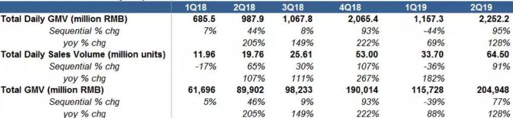 从该数据来看,2019年第2季度的GMV,已经达到历史最高值。