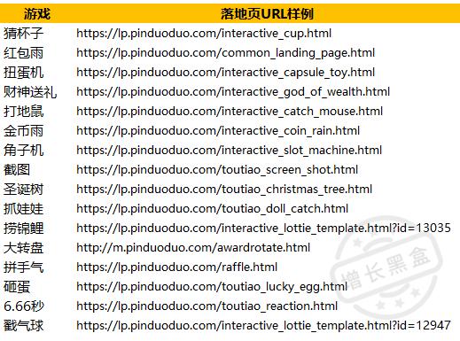 (互动游戏类广告落地页URL样例;数据来源:ADBUG)