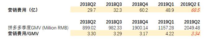 二级市场开始关注拼多多急剧上升的获客成本,尤其是在2019年Q1财报发布后,高额的营销费用并没有带来预期的GMV增长,使得股价也受到了影响。