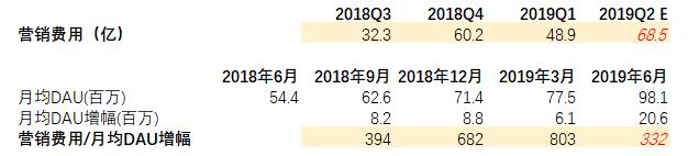 因此,我们对拼多多2019年品牌广告费用的预测依然保持去年22亿左右的规模,这里并没有发现增量。