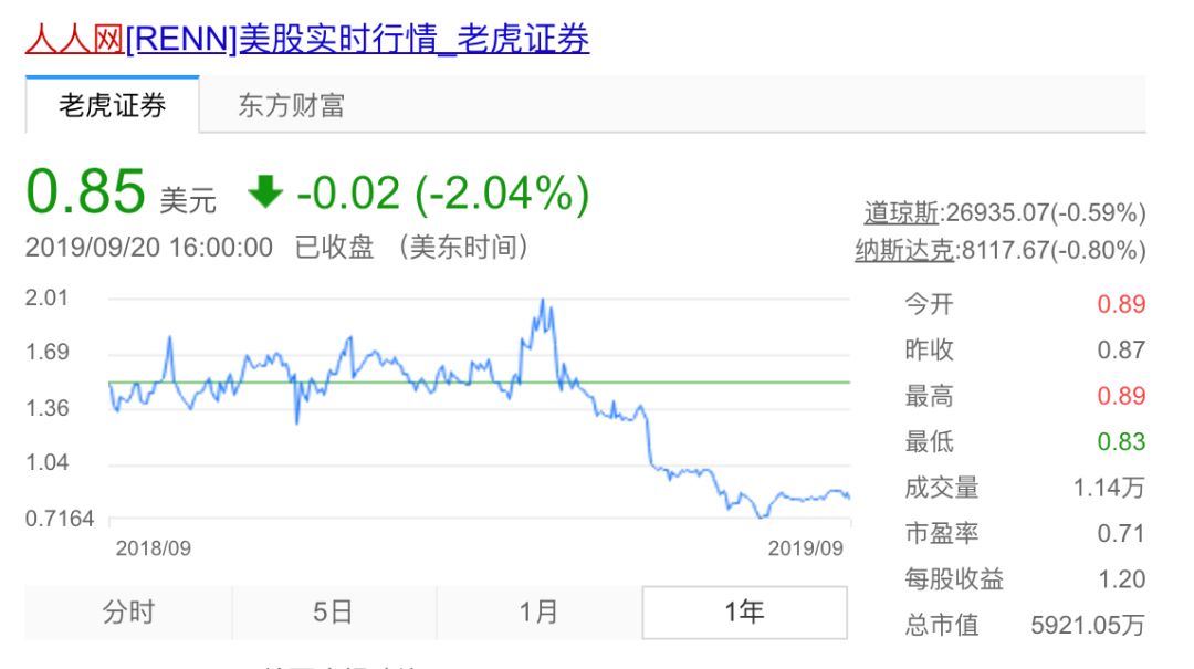 最近一年,人人网已经进入股价低于一美元的“常态”