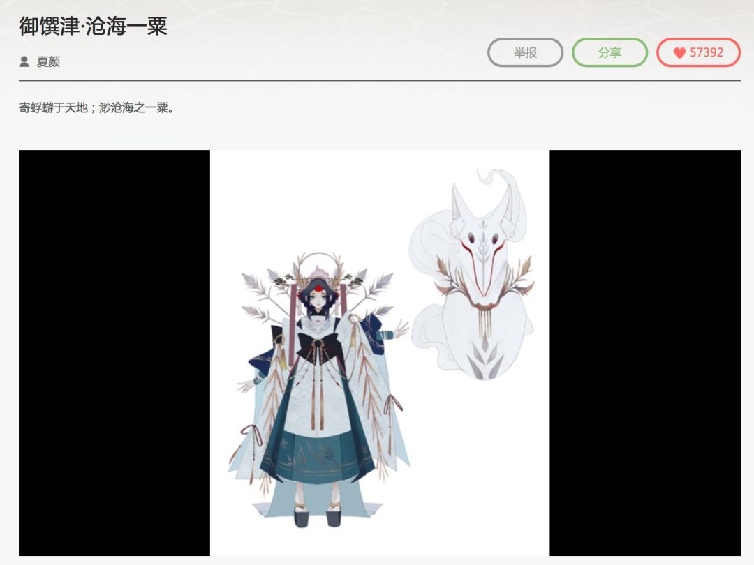由玩家设计的御馔津皮肤,图片截自《阴阳师》“百绘罗衣”活动官网